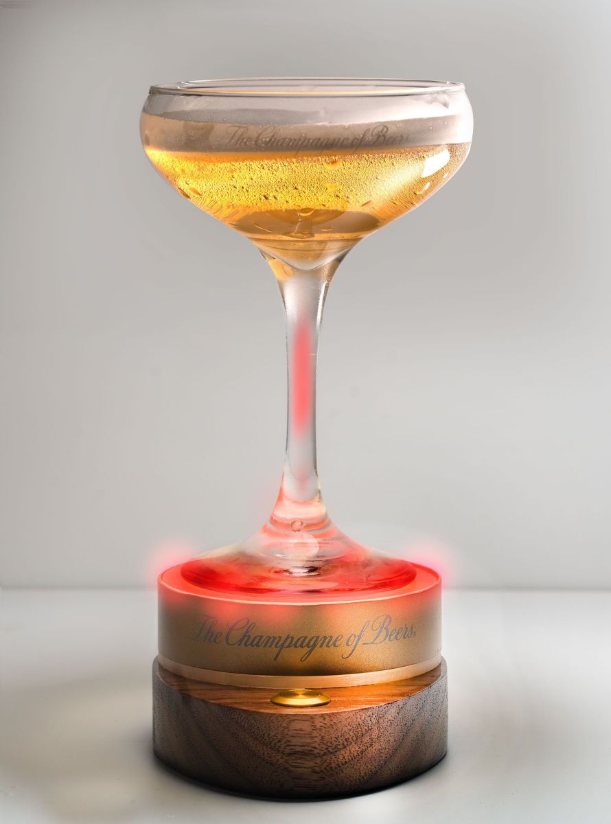 Well, two shining lights—embedded into the high-tech coasters for a pair of holiday champagne glasses from the intoxicating minds at Miller High Life.