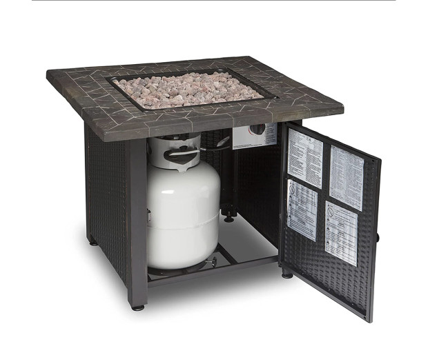 Another great benefit of the Endless Summer Outdoor Propane Fire Pit Table is that the propane tank is hidden. It doesn't stand out when you are using it, but rather lives hidden in the base of this fire pit. There is an edge all around the pit, which lets you easily place drinks down while sitting around the fire. Thanks to that steel and tile design, it fits in with any backyard's look as well.
