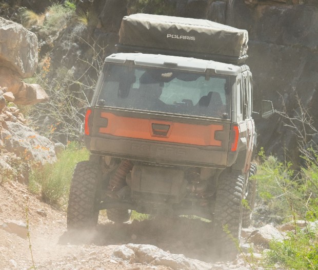 I’d also like to take a moment to remind you that all of this was happening with a 100-plus pound rooftop tent attached to the Xpedition’s optional Rhino Roof Rack system. Polaris says they designed the Xpedition’s chassis and suspension to perform with an extra 150 pounds of static weight, and it works well enough that I actually forgot there was a tent on the roof.