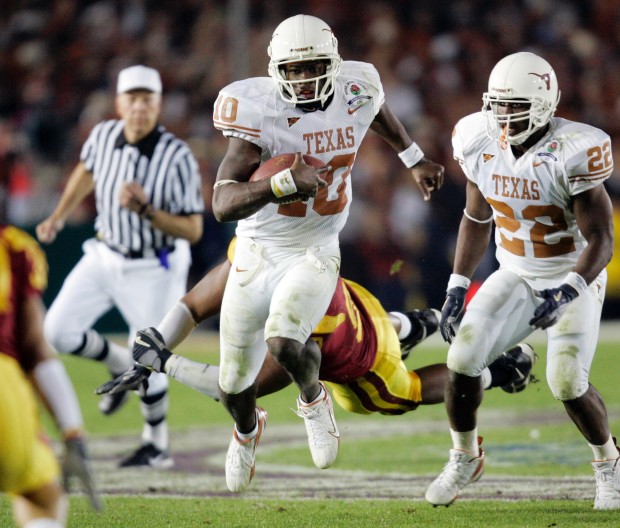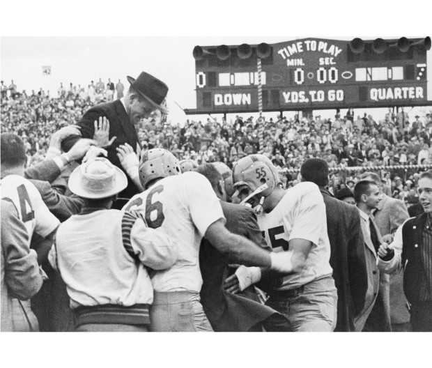 Many say this was the greatest game in college football history, and they have a point. In the 2005 season’s national championship game, unstoppable dual-threat quarterback Vince Young (above) led Texas against a USC team that had not lost a single game in two seasons. USC, the favorite, led in the fourth quarter and tried to clinch the game on a fourth-and-one carry with power tailback LenDale White. The Longhorns stacked him up and got the ball back to Young, who went right to work. Young’s winning touchdown run on fourth-and-five is an all-time memory, as is broadcaster Keith Jackson’s call: “He’s going for the corner…. He’s got it.”