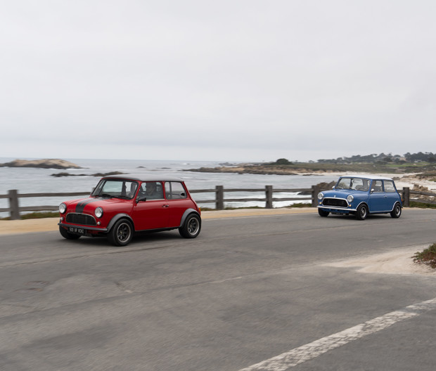 The 300-horsepower Tesla drive unit has way too much torque for a front-wheel-drive Mini on 10-inch wheels, so Gildred installs a button to keep output at 50 percent—which honestly still might overwhelm average drivers with torque steer. But the red and blue hatches provided entirely unexpected levels of room on the inside, build quality in the conversions, and, of course, fun when pushed to full throttle on the winding beachfront roads of Monterey’s famous 17 Mile Drive.